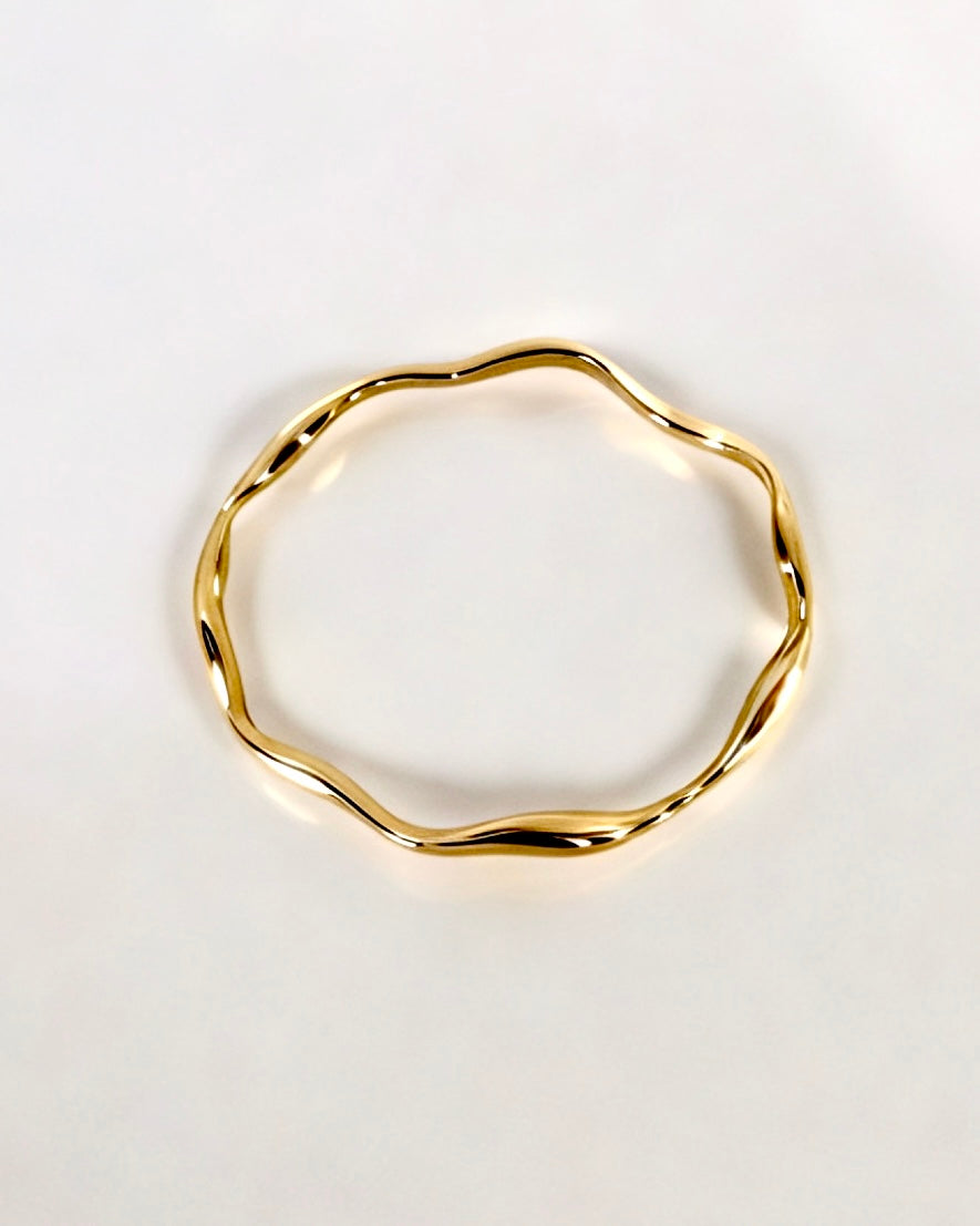 A solid undulating bangle. The wavy form of this bangle holds the feel of a continuous pulsing heartbeat. It's width undulates between 2.5mm and 4.5mm.