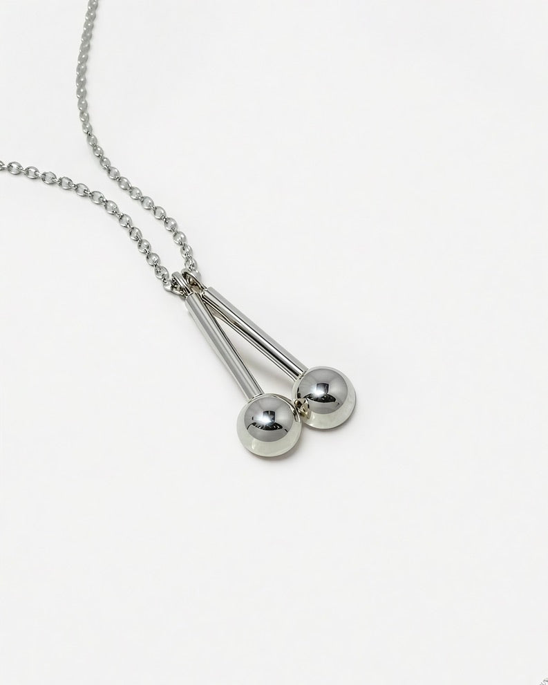 A playful yet refined necklace with a nice weight to it, intended for everyday wear.