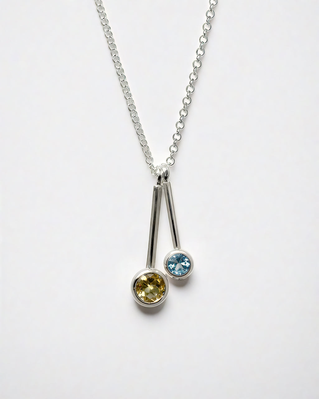 A luxurious pair of interchangeable solid sterling silver pendants on a medium weight chain, featuring a large 8mm stone and a 6mm stone.