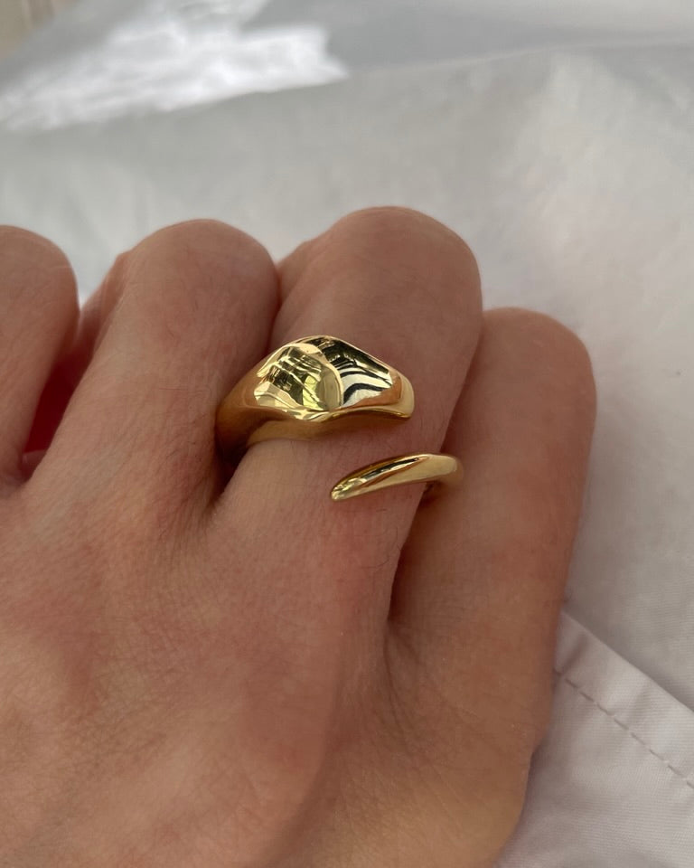 Inspired by the time worn treasures and relics of ancient civilisations, these adornments have been hand formed and carved from wax before being transformed into smooth solid precious metal.